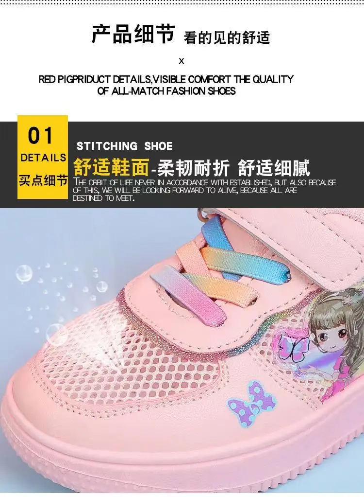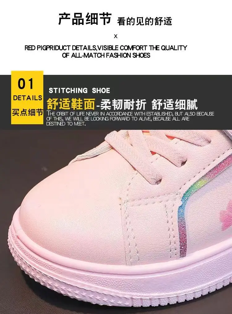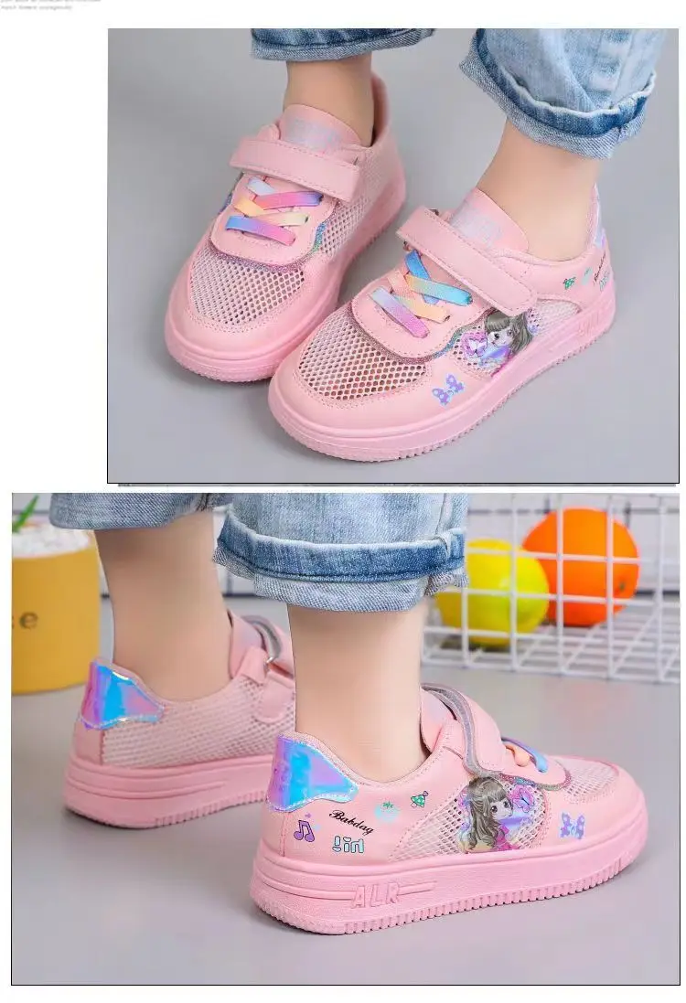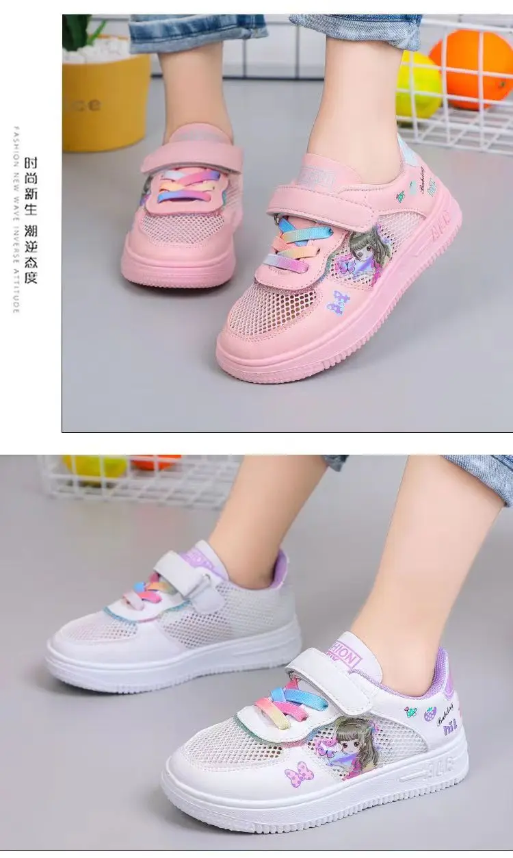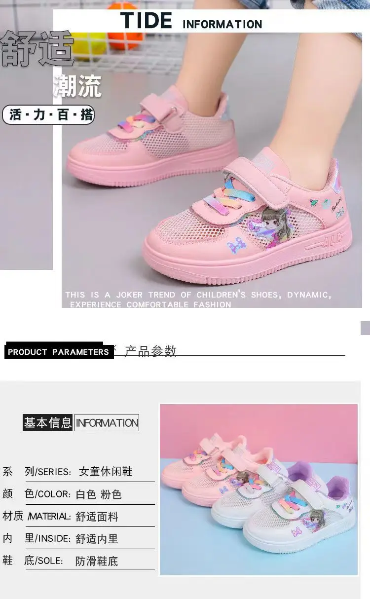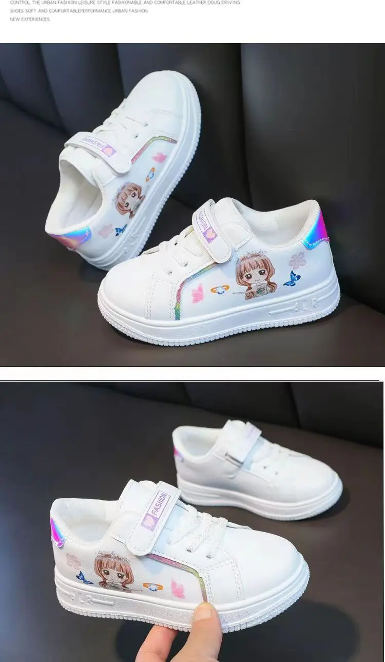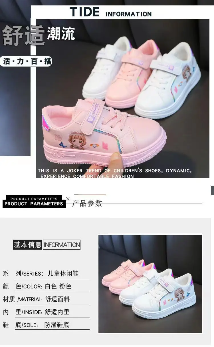 Kids Popular Cartoon Sports Superlight Shoes Girls White Sneakers Spring Autumu